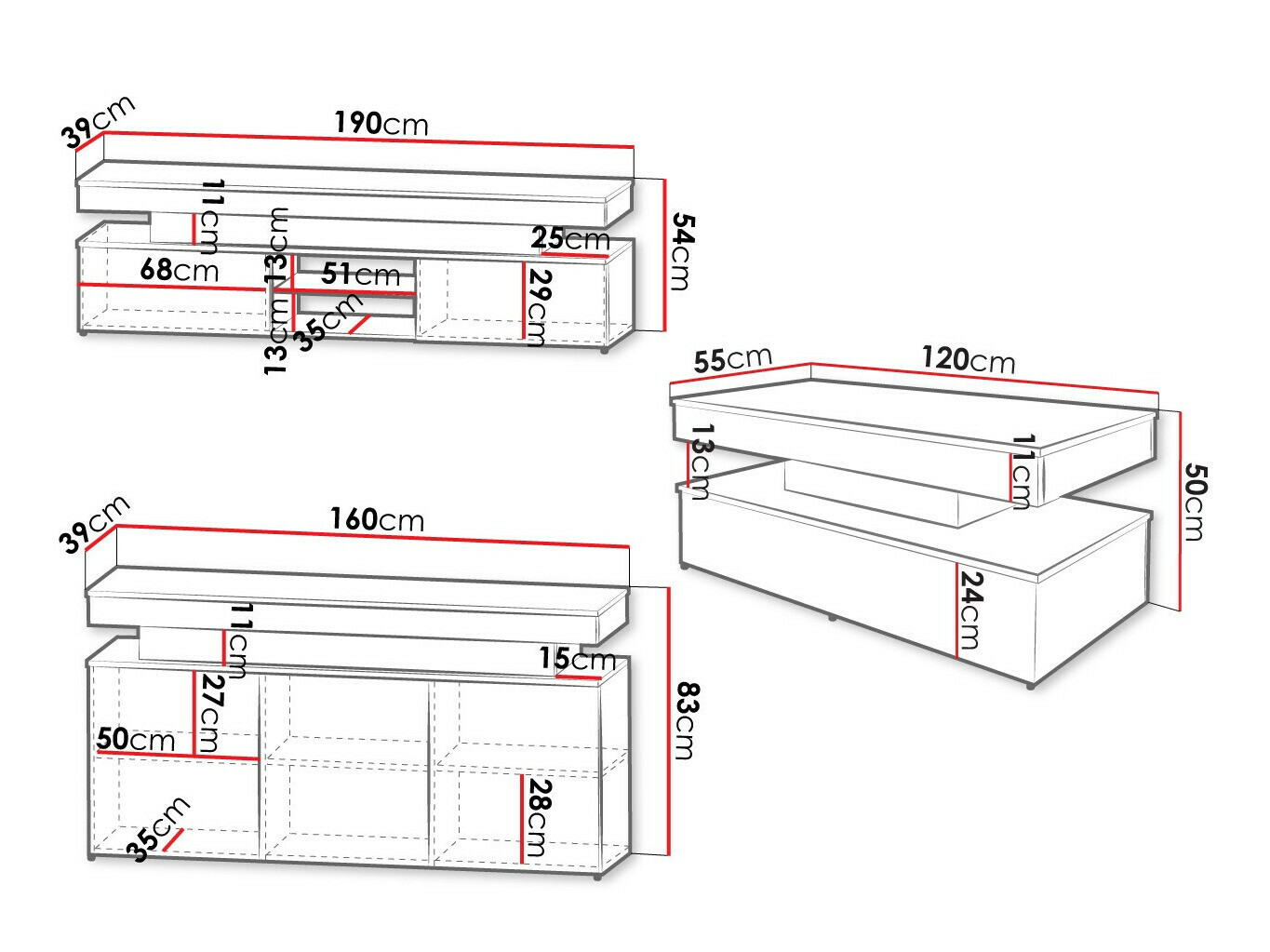 TV-meubel afmetingen: