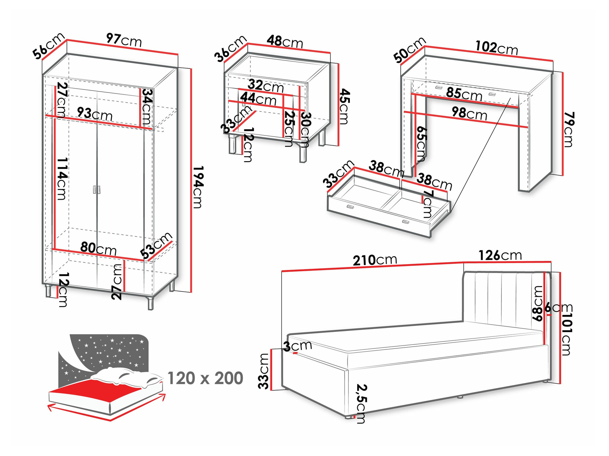Slaapkamer set Mormavu 112 (Kasjmier + Grijs)