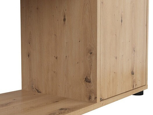Als je op zoek bent naar meubilair voor een functioneel kantoor - dan is deze collectie voor jou bedoeld. De "Artisan" eiken en zwarte kleurencombinatie voegen moderniteit toe aan het meubilair. De minimalistische zwarte kunststof handgrepen passen perfect in het ontwerp. De meubels in de collectie zijn gemaakt van gelamineerde spaanplaat met een krasbestendig oppervlak. Door deze beschermlaag zijn de meubels niet alleen bestand tegen krassen, maar ook beter beschermd tegen vocht of vlekken. Het in de meubelen ingebouwde geruisloze sluitmechanisme zal de gebruikerservaring verder verbeteren en zorgen voor het geruisloos openen en sluiten van deuren en laden. Het meubel heeft zowel open als gesloten opbergruimtes. Hierdoor kunnen persoonlijke bezittingen worden opgeborgen op zichtbare planken of verborgen achter deuren. De collectie maakt gebruik van warmtebehandeld, gehard matglas. De weerstand ervan is 5-6 keer hoger dan die van gewoon, thermisch onbehandeld glas. Het glas wordt gevormd door een zwart aluminium frame. De planken van de collectie zijn universeel. Tijdens de montage kan worden bepaald in welke richting de deur wordt geopend. De ladeblokken hebben wieltjes in plaats van poten, waardoor het verplaatsen van meubels in de kamer zeer eenvoudig en gemakkelijk wordt. De lock-in planken zorgen ervoor dat persoonlijke spullen nog veiliger kunnen worden opgeborgen. De basis van de bureaus van de collectie is gemaakt van een zwart metalen frame dat voor stabiliteit zorgt. Voor wie een functioneel bureau zoekt, biedt de collectie bureaus met een elektrisch hoogte verstelmechanisme. Met behulp van een paar knoppen verandert de hoogte van de tafel, zodat je nog comfortabeler en ergonomischer je werk kunt doen. Met functionele en universele meubels wordt het inrichten van een kantoorruimte een plezier.