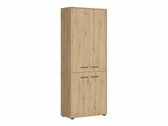 Als je op zoek bent naar meubilair voor een functioneel kantoor - dan is deze collectie voor jou bedoeld. De "Artisan" eiken en zwarte kleurencombinatie voegen moderniteit toe aan het meubilair. De minimalistische zwarte kunststof handgrepen passen perfect in het ontwerp. De meubels in de collectie zijn gemaakt van gelamineerde spaanplaat met een krasbestendig oppervlak. Door deze beschermlaag zijn de meubels niet alleen bestand tegen krassen, maar ook beter beschermd tegen vocht of vlekken. Het in de meubelen ingebouwde geruisloze sluitmechanisme zal de gebruikerservaring verder verbeteren en zorgen voor het geruisloos openen en sluiten van deuren en laden. Het meubel heeft zowel open als gesloten opbergruimtes. Hierdoor kunnen persoonlijke bezittingen worden opgeborgen op zichtbare planken of verborgen achter deuren. De collectie maakt gebruik van warmtebehandeld, gehard matglas. De weerstand ervan is 5-6 keer hoger dan die van gewoon, thermisch onbehandeld glas. Het glas wordt gevormd door een zwart aluminium frame. De planken van de collectie zijn universeel. Tijdens de montage kan worden bepaald in welke richting de deur wordt geopend. De ladeblokken hebben wieltjes in plaats van poten, waardoor het verplaatsen van meubels in de kamer zeer eenvoudig en gemakkelijk wordt. De lock-in planken zorgen ervoor dat persoonlijke spullen nog veiliger kunnen worden opgeborgen. De basis van de bureaus van de collectie is gemaakt van een zwart metalen frame dat voor stabiliteit zorgt. Voor wie een functioneel bureau zoekt, biedt de collectie bureaus met een elektrisch hoogte verstelmechanisme. Met behulp van een paar knoppen verandert de hoogte van de tafel, zodat je nog comfortabeler en ergonomischer je werk kunt doen. Met functionele en universele meubels wordt het inrichten van een kantoorruimte een plezier.
