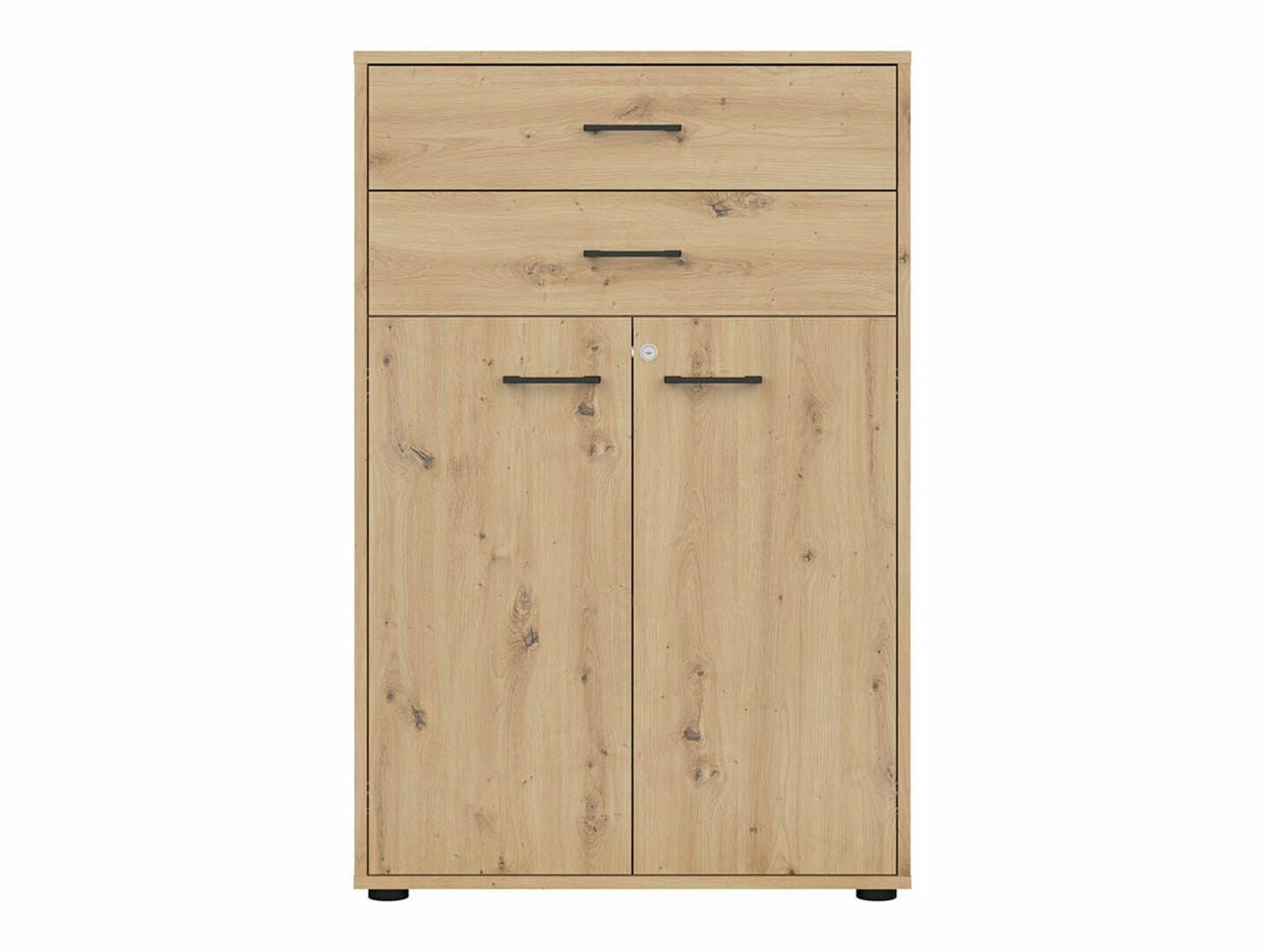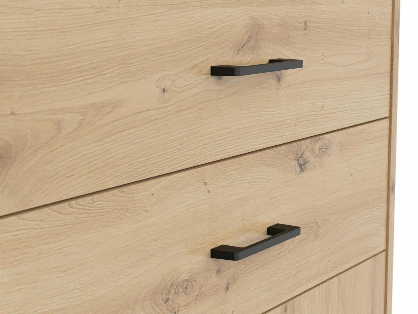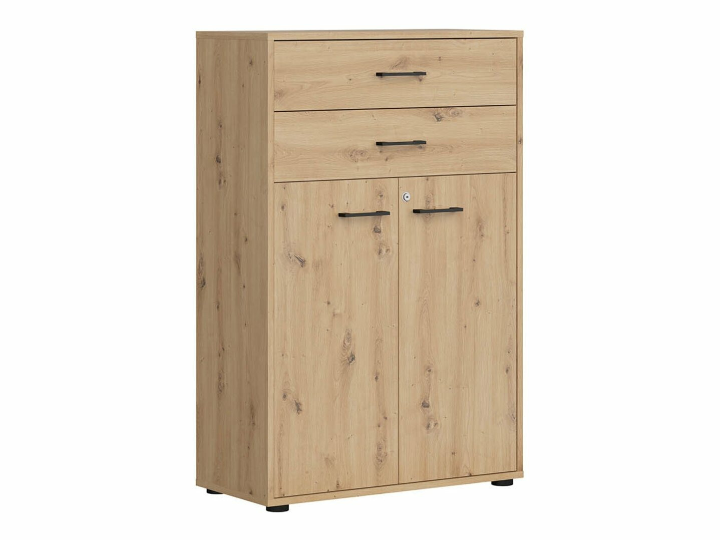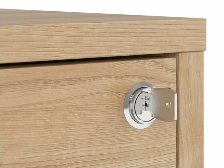 Als je op zoek bent naar meubilair voor een functioneel kantoor - dan is deze collectie voor jou bedoeld. De "Artisan" eiken en zwarte kleurencombinatie voegen moderniteit toe aan het meubilair. De minimalistische zwarte kunststof handgrepen passen perfect in het ontwerp. De meubels in de collectie zijn gemaakt van gelamineerde spaanplaat met een krasbestendig oppervlak. Door deze beschermlaag zijn de meubels niet alleen bestand tegen krassen, maar ook beter beschermd tegen vocht of vlekken. Het in de meubelen ingebouwde geruisloze sluitmechanisme zal de gebruikerservaring verder verbeteren en zorgen voor het geruisloos openen en sluiten van deuren en laden. Het meubel heeft zowel open als gesloten opbergruimtes. Hierdoor kunnen persoonlijke bezittingen worden opgeborgen op zichtbare planken of verborgen achter deuren. De collectie maakt gebruik van warmtebehandeld, gehard matglas. De weerstand ervan is 5-6 keer hoger dan die van gewoon, thermisch onbehandeld glas. Het glas wordt gevormd door een zwart aluminium frame. De planken van de collectie zijn universeel. Tijdens de montage kan worden bepaald in welke richting de deur wordt geopend. De ladeblokken hebben wieltjes in plaats van poten, waardoor het verplaatsen van meubels in de kamer zeer eenvoudig en gemakkelijk wordt. De lock-in planken zorgen ervoor dat persoonlijke spullen nog veiliger kunnen worden opgeborgen. De basis van de bureaus van de collectie is gemaakt van een zwart metalen frame dat voor stabiliteit zorgt. Voor wie een functioneel bureau zoekt, biedt de collectie bureaus met een elektrisch hoogte verstelmechanisme. Met behulp van een paar knoppen verandert de hoogte van de tafel, zodat je nog comfortabeler en ergonomischer je werk kunt doen. Met functionele en universele meubels wordt het inrichten van een kantoorruimte een plezier.