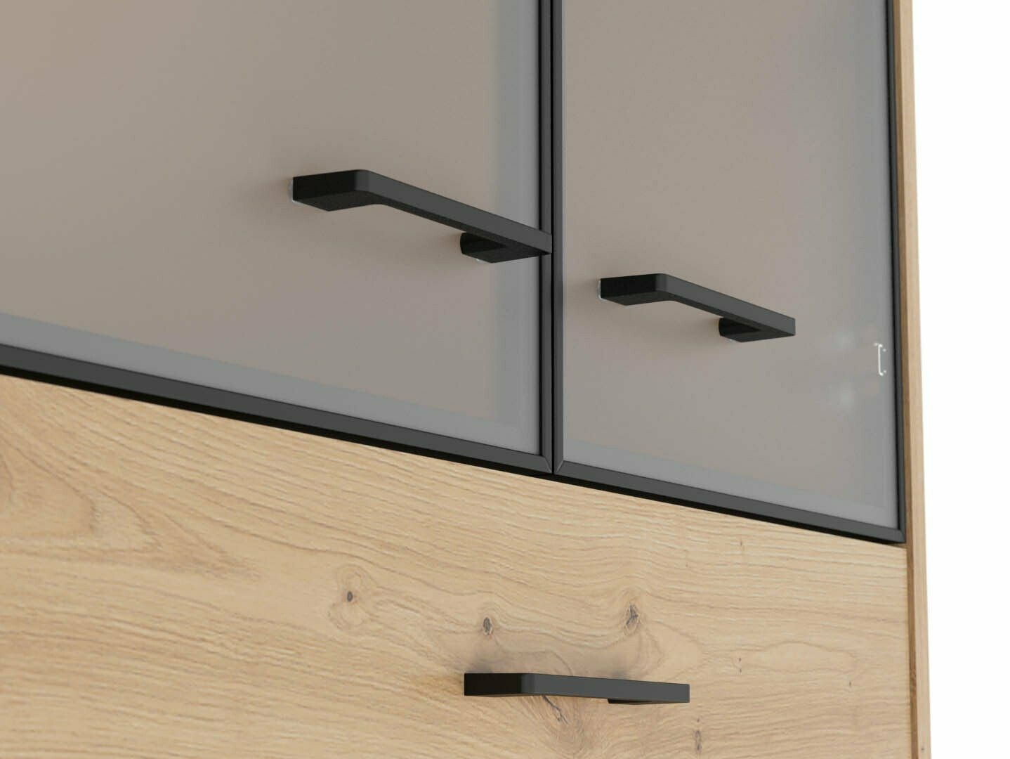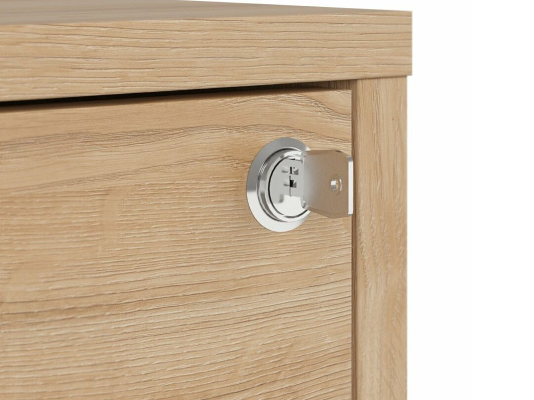Als je op zoek bent naar meubilair voor een functioneel kantoor - dan is deze collectie voor jou bedoeld. De "Artisan" eiken en zwarte kleurencombinatie voegen moderniteit toe aan het meubilair. De minimalistische zwarte kunststof handgrepen passen perfect in het ontwerp. De meubels in de collectie zijn gemaakt van gelamineerde spaanplaat met een krasbestendig oppervlak. Door deze beschermlaag zijn de meubels niet alleen bestand tegen krassen, maar ook beter beschermd tegen vocht of vlekken. Het in de meubelen ingebouwde geruisloze sluitmechanisme zal de gebruikerservaring verder verbeteren en zorgen voor het geruisloos openen en sluiten van deuren en laden. Het meubel heeft zowel open als gesloten opbergruimtes. Hierdoor kunnen persoonlijke bezittingen worden opgeborgen op zichtbare planken of verborgen achter deuren. De collectie maakt gebruik van warmtebehandeld, gehard matglas. De weerstand ervan is 5-6 keer hoger dan die van gewoon, thermisch onbehandeld glas. Het glas wordt gevormd door een zwart aluminium frame. De planken van de collectie zijn universeel. Tijdens de montage kan worden bepaald in welke richting de deur wordt geopend. De ladeblokken hebben wieltjes in plaats van poten, waardoor het verplaatsen van meubels in de kamer zeer eenvoudig en gemakkelijk wordt. De lock-in planken zorgen ervoor dat persoonlijke spullen nog veiliger kunnen worden opgeborgen. De basis van de bureaus van de collectie is gemaakt van een zwart metalen frame dat voor stabiliteit zorgt. Voor wie een functioneel bureau zoekt, biedt de collectie bureaus met een elektrisch hoogte verstelmechanisme. Met behulp van een paar knoppen verandert de hoogte van de tafel, zodat je nog comfortabeler en ergonomischer je werk kunt doen. Met functionele en universele meubels wordt het inrichten van een kantoorruimte een plezier.