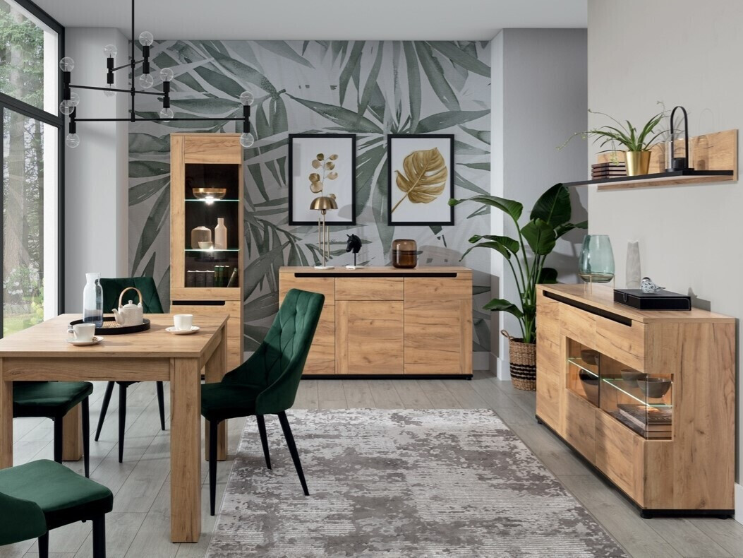 Een collectie van modern vormgegeven meubels die het interieur van het huis aanvult met subtiele warmte en harmonie. De gouden kleur van “Craft” Oak geeft dit meubelstuk een tijdloze en tegelijkertijd moderne uitstraling. De meubels zijn voorzien van een geruisloos sluitingsmechanisme, waardoor je het lawaaierige en plotselinge sluiten van laden en deuren vermijdt. Ook zijn de randen van het meubilair beschermd, zodat je je geen zorgen hoeft te maken over snelle slijtage. Het design van de vitrines wordt aangevuld door gehard glas, dat duurzamer is dan gewoon glas. Subtiele, verborgen handgrepen verrijken niet alleen de esthetiek van het meubilair, maar benadrukken ook hun minimalistische vormen. Deze collectie is een uitstekende keuze voor degenen die een gevoel van moderniteit en warmte aan hun huis willen toevoegen.