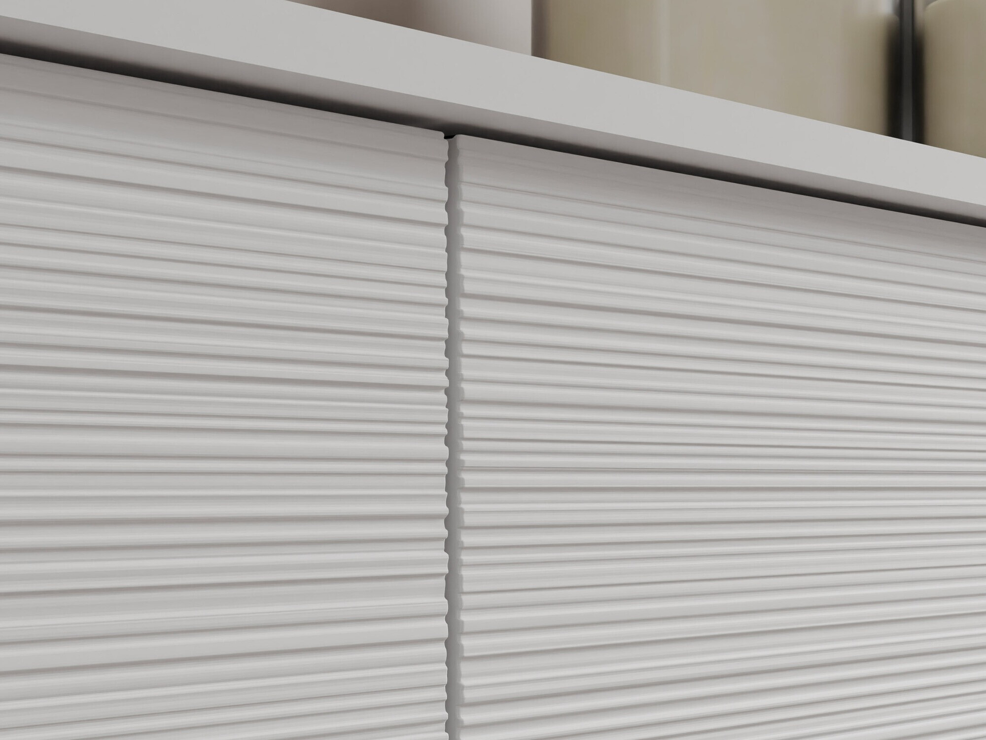 Open deuren en laden met slechts één aanraking. Het "Push to open"-systeem bestaat uit een veer- en magneetmechanisme om de deur in te drukken en vast te houden. Het heeft ook scharnieren met speciale drukveren om de deur te openen. Dankzij dit mechanisme heeft het meubel geen handgrepen nodig. Je kunt deuren en laden met één klik openen en sluiten.