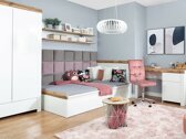 Deze collectie is ontworpen voor wie op zoek is naar moderne designoplossingen. Ze brengt de orde, zuiverheid en harmonie samen die kenmerkend zijn voor de Scandinavische stijl. Duidelijke vormen en strakke lijnen maken het mogelijk een minimalistische ruimte te creëren waarin esthetiek en functionaliteit elkaar aanvullen. Verborgen handgrepen helpen een naadloze, opgeruimde uitstraling te behouden, terwijl het softclose-mechanisme zorgt voor comfortabel dagelijks gebruik – deuren en laden openen en sluiten soepel en geruisloos. De visuele lichtheid van de collectie wordt verder versterkt door elementen van gehard glas, die een verfijnde touch toevoegen. Dit zijn doordachte keuzes waardoor het meubilair moeiteloos opgaat in hedendaagse interieurs.