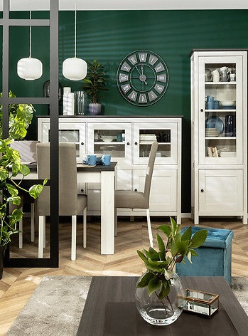 Met behulp van de meubels uit deze collectie kan de woonkamer een gezellige ruimte worden voor tijd met het gezin en lange gesprekken. Rustige kleuren en een elegant ontwerp zullen je tijd thuis nog aangenamer maken. In deze collectie vind je meubels voor beide ruimtes: de woonkamer en de slaapkamer. De meubels van deze collectie passen perfect in zowel lichte als donkere interieurs, de meubels behouden een minimalistische stijl. Lijnen en details in Provençaalse stijl voeren hier de boventoon. Eenvoudige lijnen, gezellige kleuren, kleine ronde handgrepen benadrukken het exclusieve karakter van de meubels. Het ontwerp wordt aangevuld met hoogwaardige details zoals gehard glas en geïntegreerde energiebesparende LED-verlichting. De laden en deuren hebben een geruisloossluitmechanisme. Dit mechanisme is bijzonder omdat het de deur en de lade beschermt tegen snel sluiten. Dankzij speciale dempers worden de deuren en laden vlak voor het sluiten gestopt en langzaam ingetrokken, zodat ze geen geluid maken.