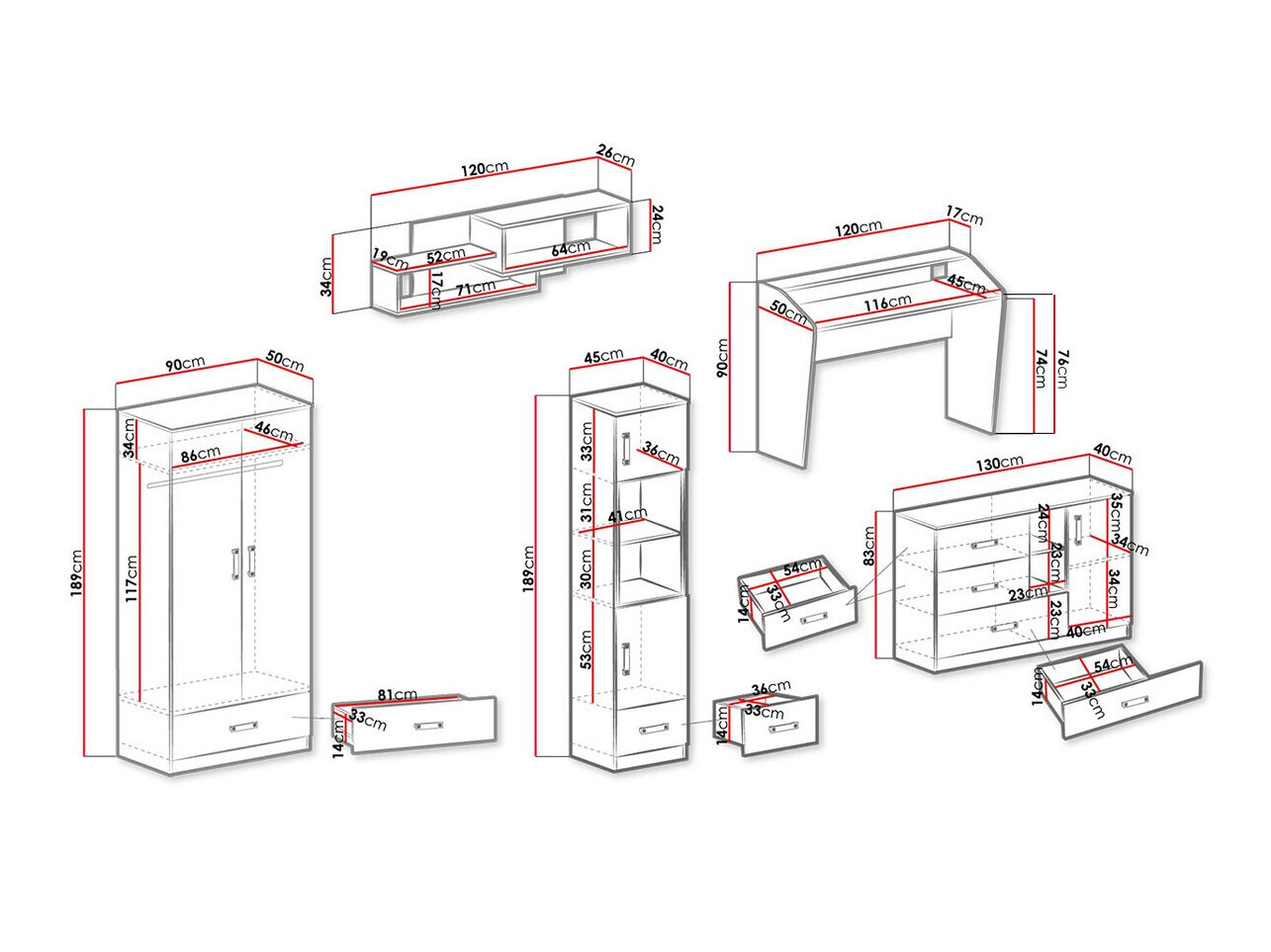 Afmetingen kledingkast: