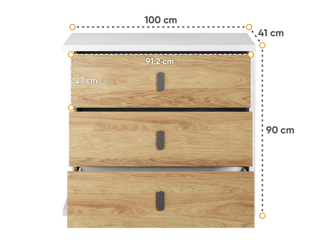Het meubilair van de collectie maakt indruk met zijn heldere kleurenpalet en eenvoudige ontwerp. Wit en warm eiken worden hier gecombineerd. Deze combinatie van kleuren en eenvoud van lijnen doet denken aan de Scandinavische interieurstijl, aangevuld met moderne interieurdetails. Het massieve witte meubel frame geeft het meubel zijn uniciteit. De gevels maken gebruik van kleine kunststof handgrepen die perfect passen bij het hele ontwerp. De ruimte in de meubels wordt volledig benut: een tafel met een groot tafelblad, ruime laden, planken met veel vakken, dit maakt het gemakkelijker om de orde te handhaven. Creëer de droomkamer van een jongere met losse meubels of door te kiezen voor een meubelset waarbij de meubels al op elkaar zijn afgestemd.