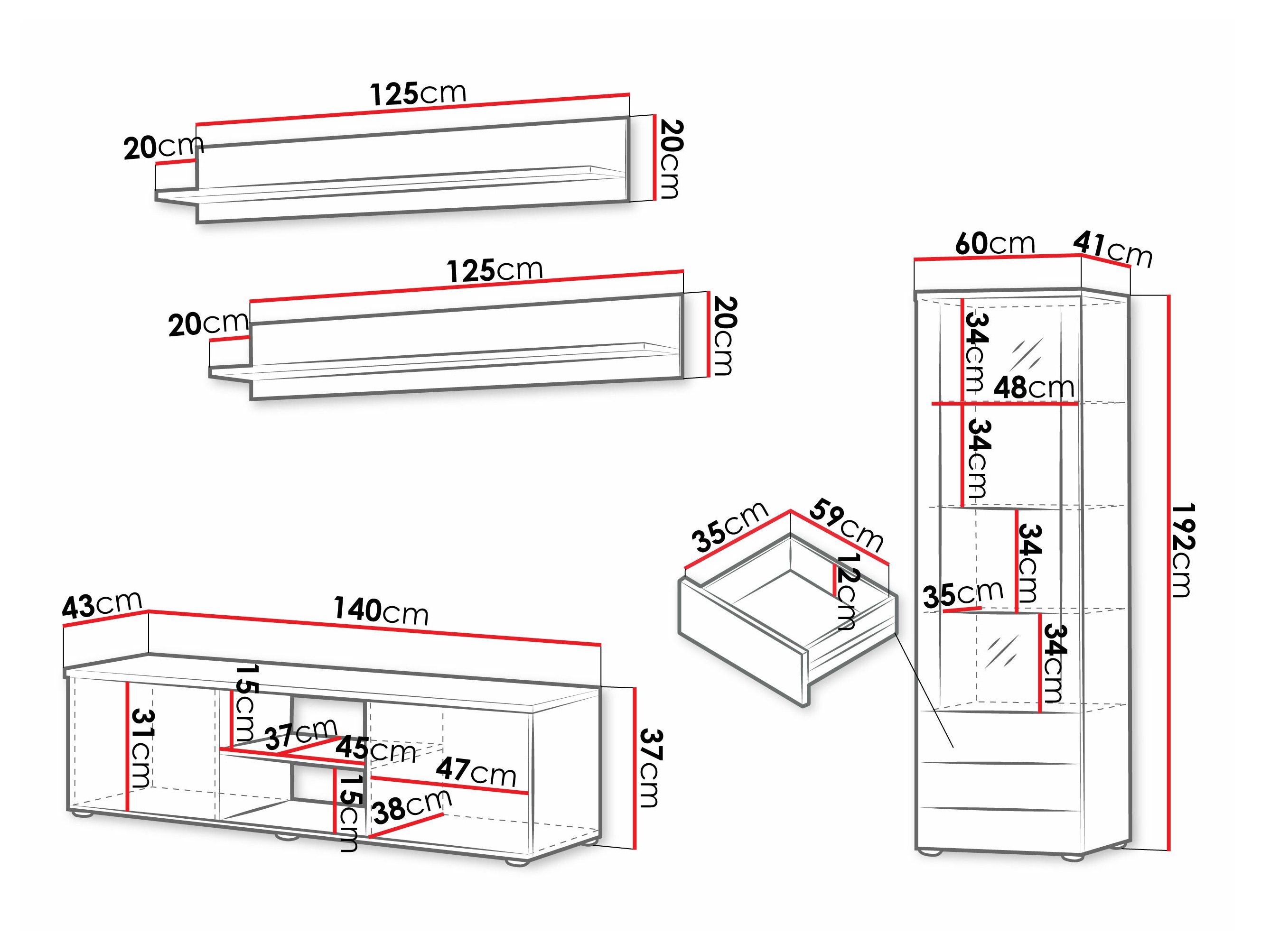 Woonkamerset Tornola 110 (Zwart + Glanzend zwart)