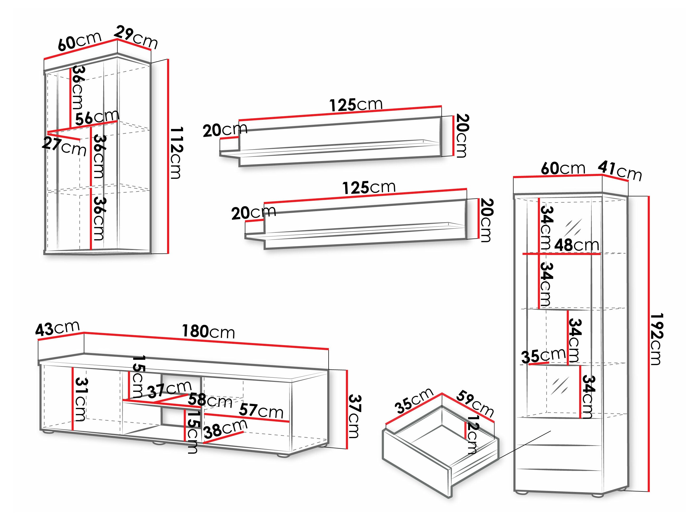 Woonkamerset Tornola 114 (Zwart + Glanzend zwart)