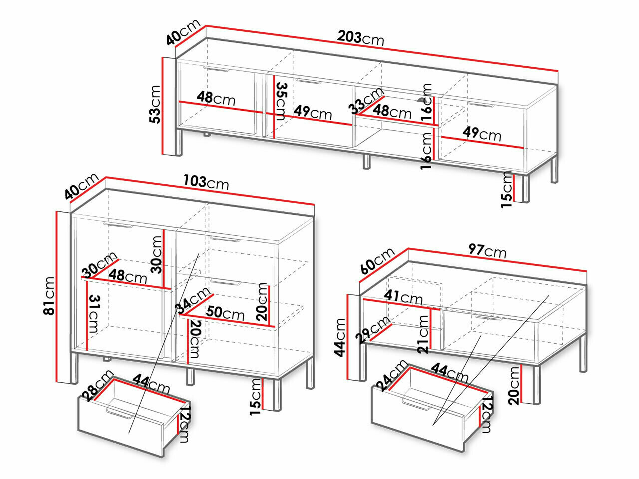 44 cm  60 cm  97 cm