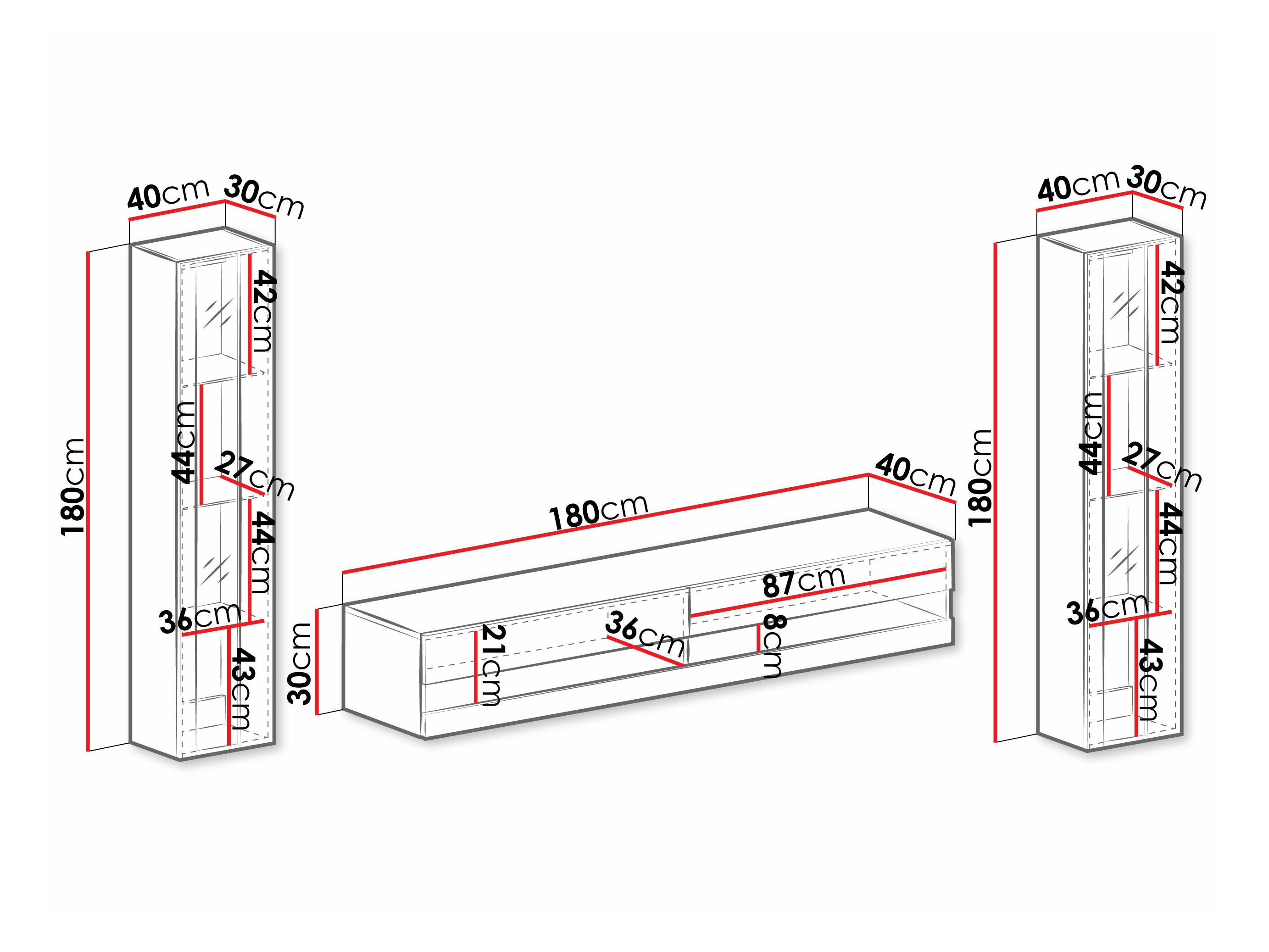 30 x 180 x 40 cm