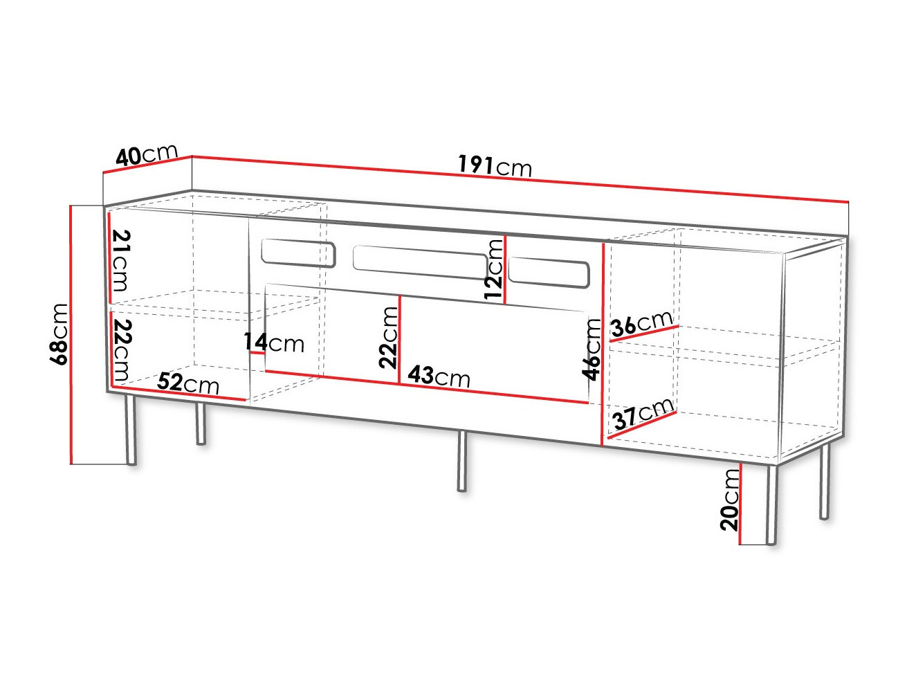 58 cm  191 cm  40 cm