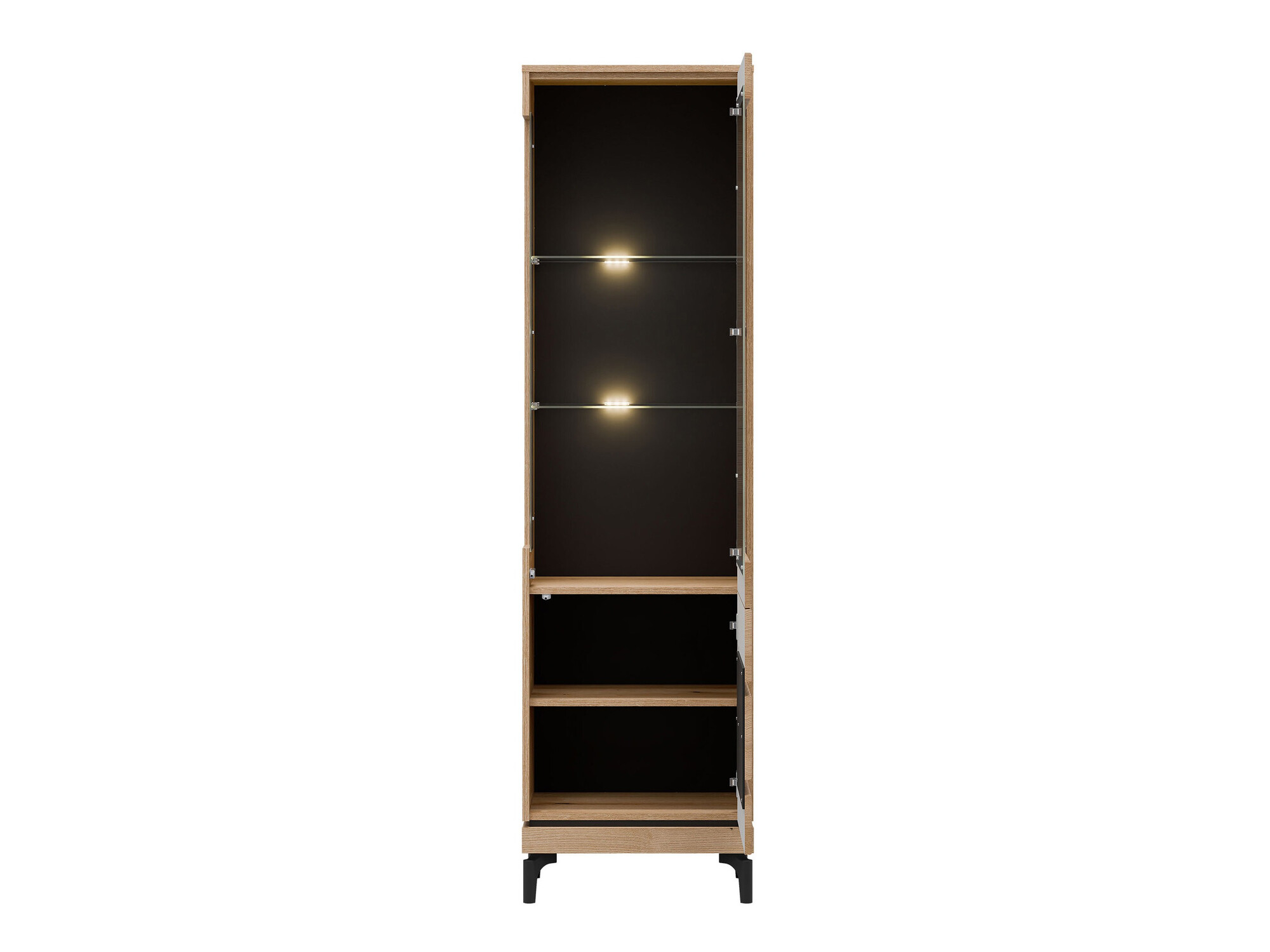 Open deuren en laden met slechts één aanraking. Het "Push to open"-systeem bestaat uit een veer- en magneetmechanisme om de deur in te drukken en vast te houden. Het heeft ook scharnieren met speciale drukveren om de deur te openen. Dankzij dit mechanisme heeft het meubel geen handgrepen nodig. Je kunt deuren en laden met één klik openen en sluiten.
