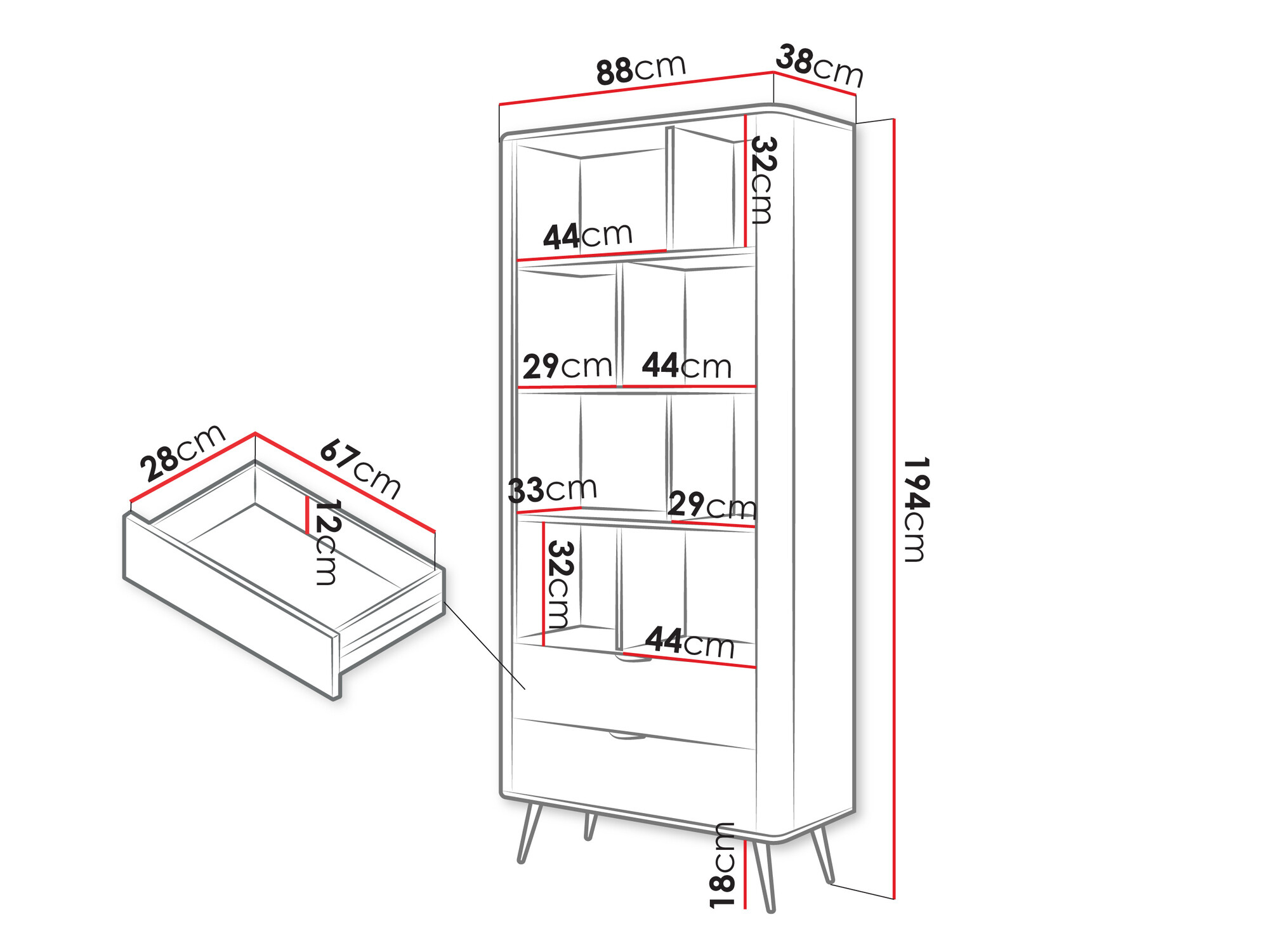 209 cm  213 cm  55 cm