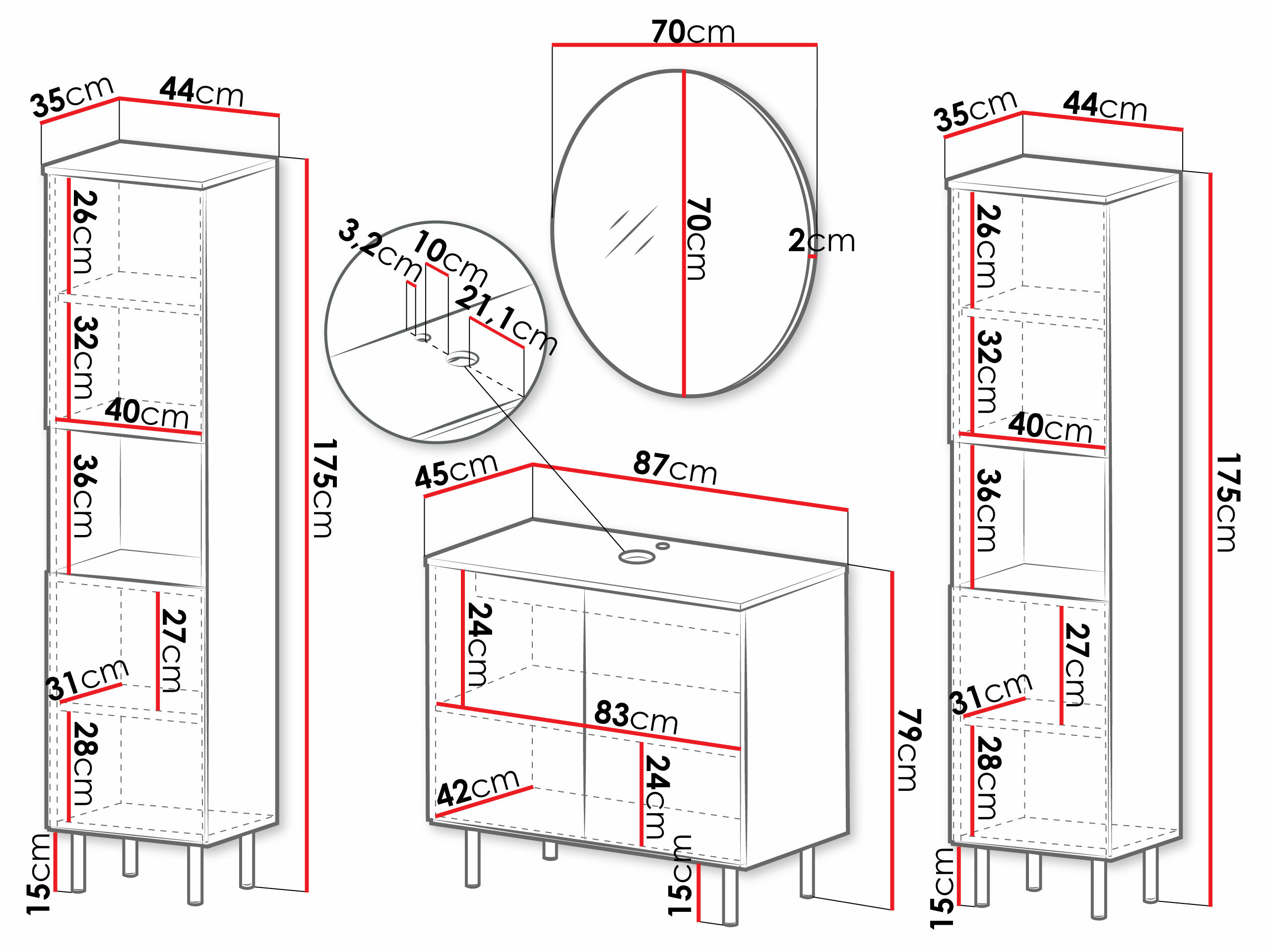 175 x 44 x 35 cm