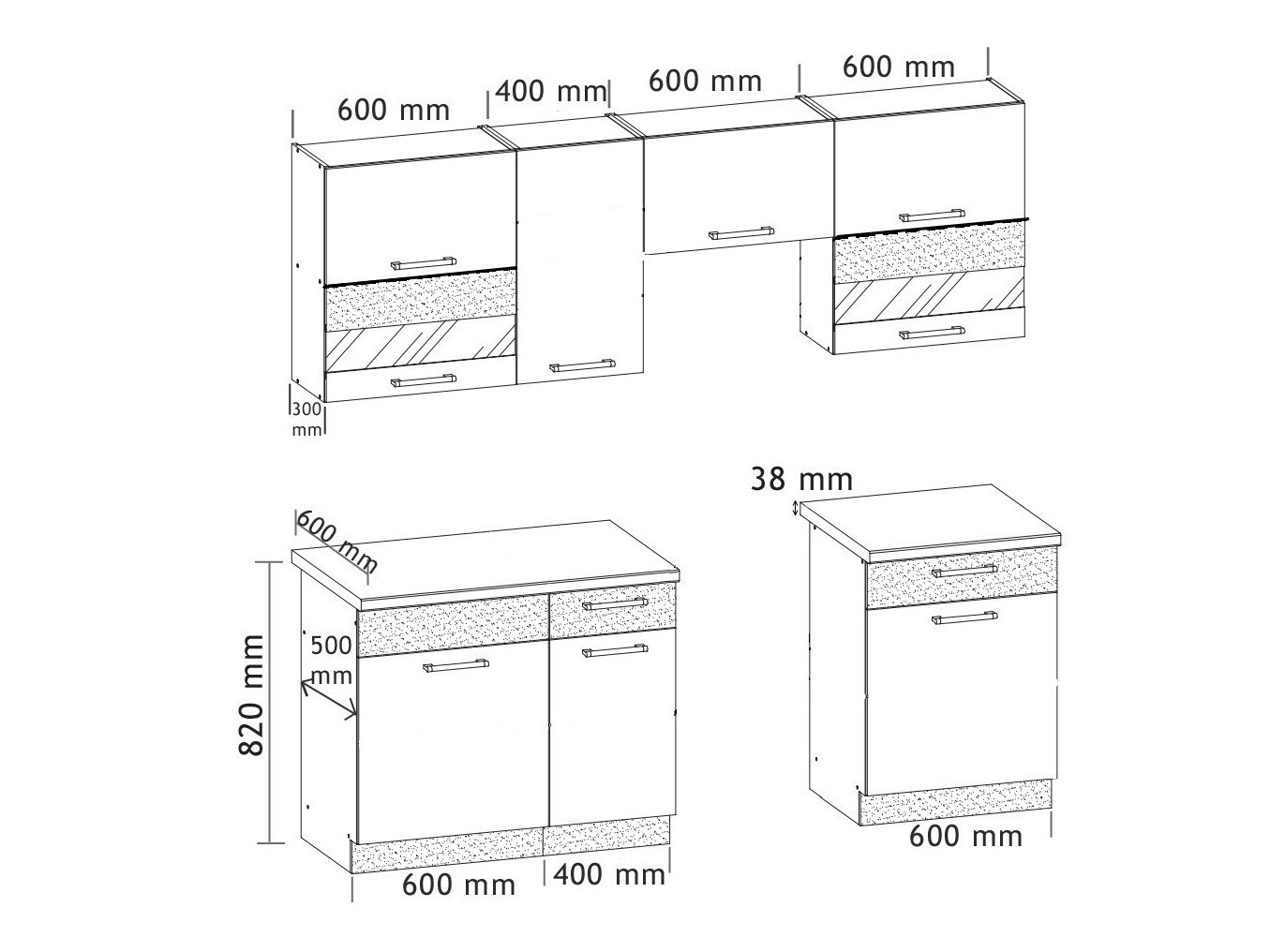 Keukenmeubels kunnen vaak als set worden gekocht, of door het combineren van losse kasten. Bij beide opties bevindt zich achter elk keukenkastje een ruimte voor leidingen langs de muur. Kasten voor inbouwapparatuur en hoekunits hebben een grotere diepte, omdat ze geen openingen voor leidingen hebben. Deze ruimte wordt van bovenaf bedekt door het werkblad. Als de kasten zonder werkblad verkocht worden, moet dit apart worden aangeschaft en gemonteerd. Het aanrechtblad wordt met schroeven vastgezet en wordt geleverd zonder voorgesneden delen voor spoelbakken of kookplaten. Bij aanschaf van een hoekkast is het belangrijk om een werkbladverbinder te kopen om eventuele openingen in de hoek te voorkomen.