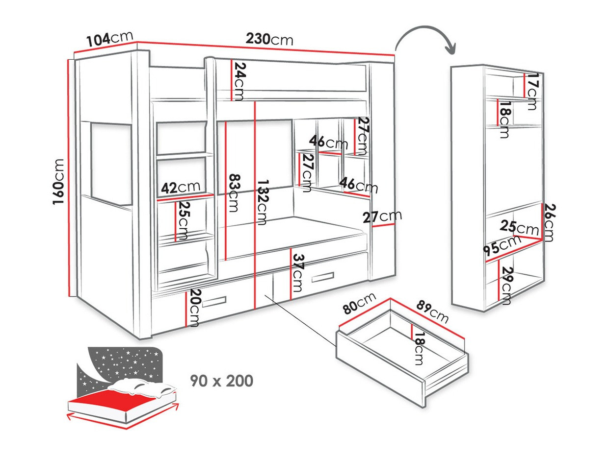 - 90 x 200 cm