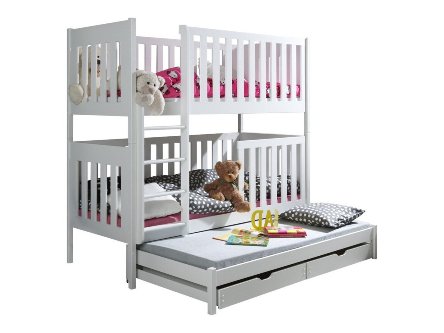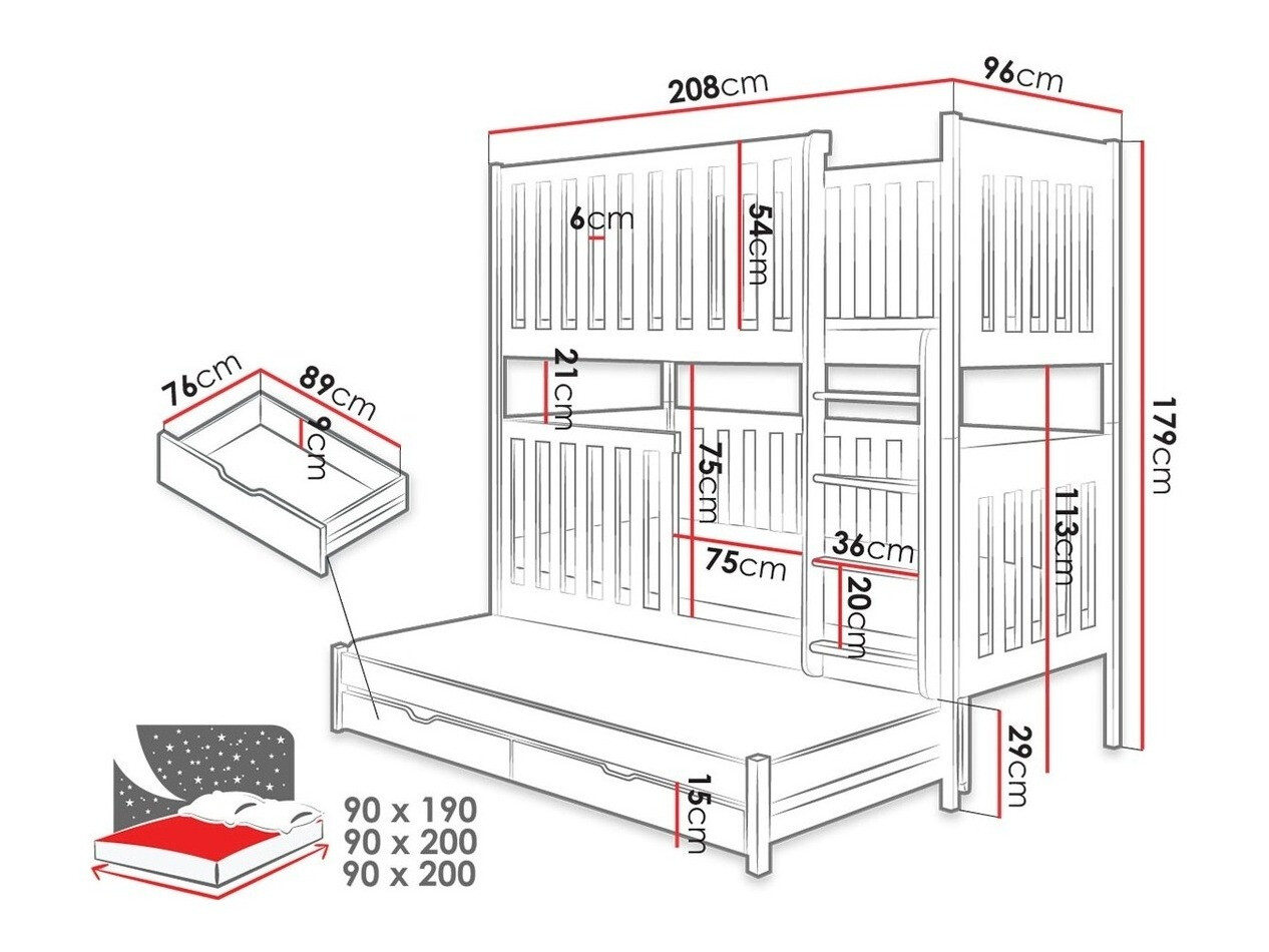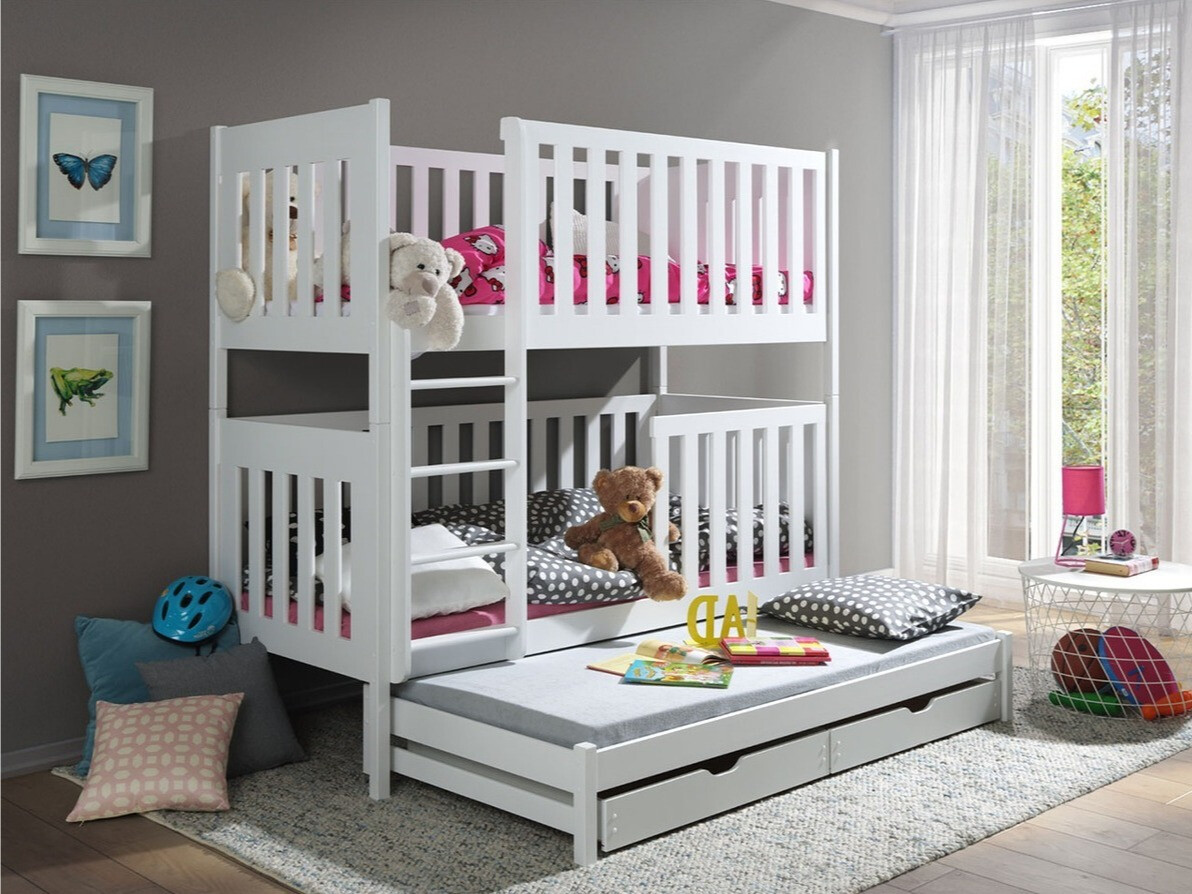 We zijn erg vol met bedden en de kinderen zijn dolblij. De bumpers zijn precies zoals we wilden - hoog en de afstand tussen de roosters klein. De trap is weer zoals we wilden - de afstand tussen de treden is perfect te gebruiken door kinderen (die van ons zijn 4,7 en 1,9 jaar oud). En hoewel het een stapelbed is dat ook een derde bed heeft, zoals een lade, zijn de 2 ingebouwde lades die onder het 3e bed komen enorm ruim - dat hadden we eerlijk gezegd niet verwacht. Bedankt voor het product en de ernst.